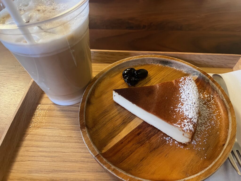 庭園内のおしゃれなカフェ、CAFE雫さんへもせっかくなので寄り道。豆腐チーズケーキとカフェラテを頂きました。どちらも優しい味でほっこり。